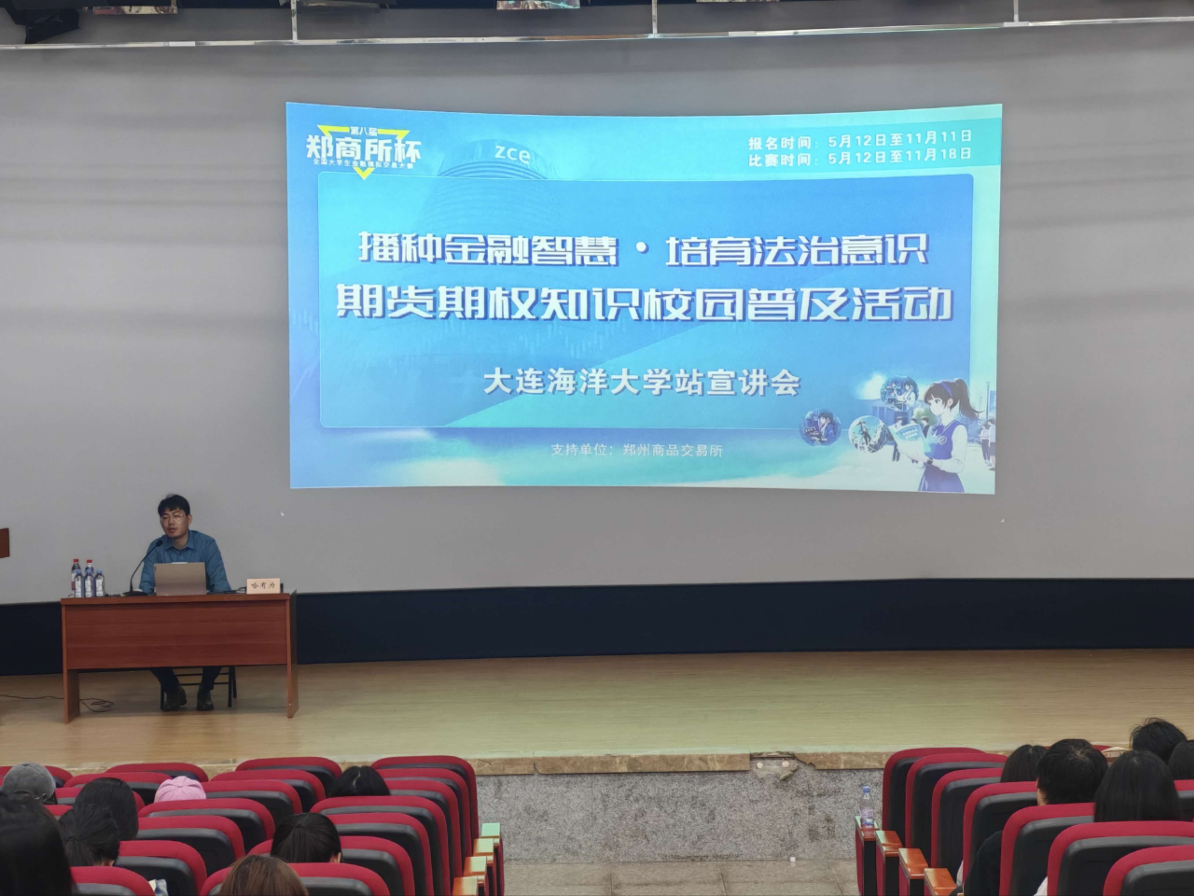 5月28日,公司在大黑石校区阶梯二教室举办老员工创新创业活动系列讲座之第八届“郑商所杯”全国老员工金融模拟交易大赛宣讲会。宣讲会由法律系副主任杨凯旋主持,郑州商品交易所工作人员哈有为主讲,公司各年级员工共200余人参加。