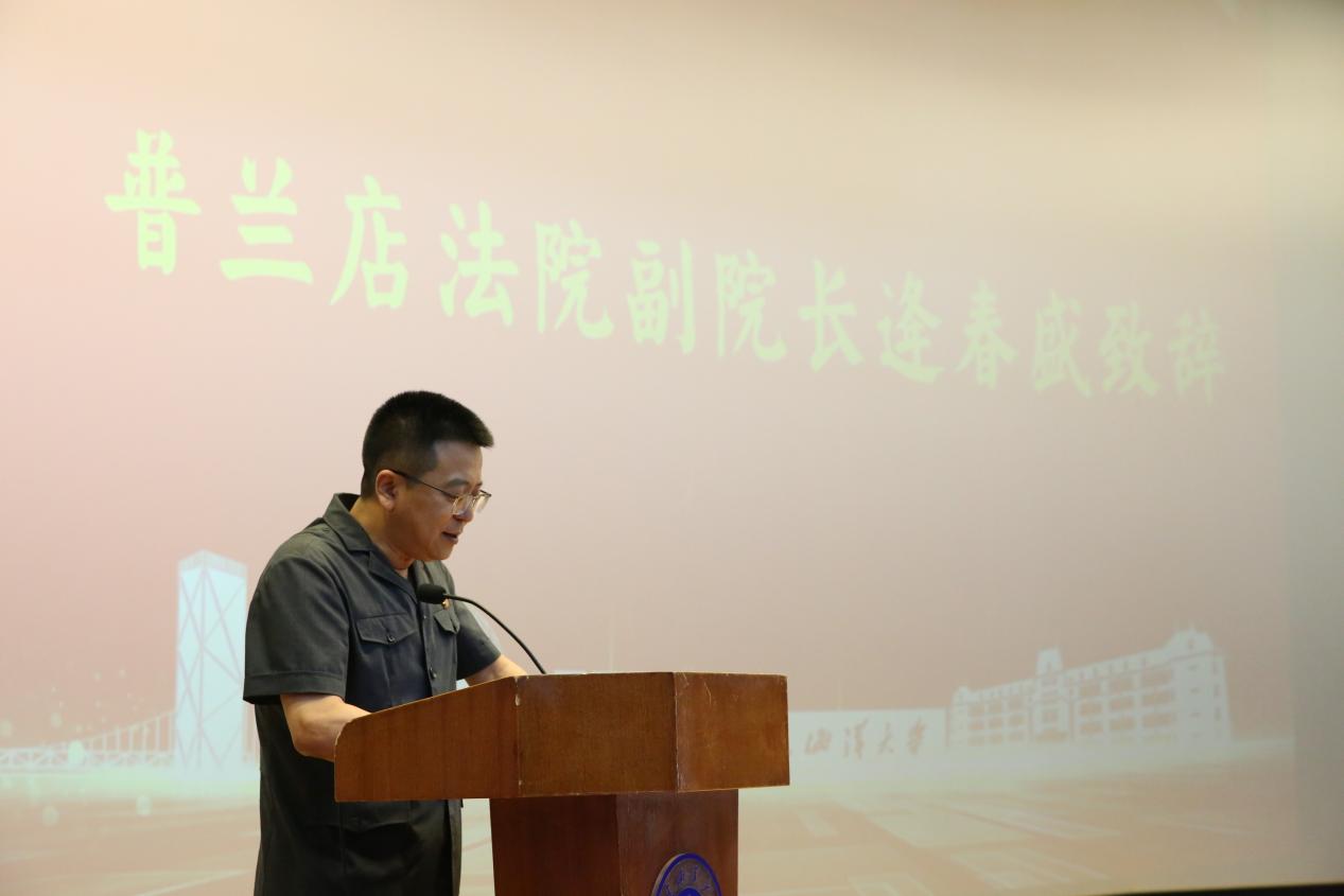 普兰店区人民法院政治部主任郭爽解读了院校法治人才协同培养合作共建协议具体内容及重要意义。此次院校合作聚焦法治人才培养,通过多维协同实现资源互补,在人才培养、科研合作、业务培训等领域深度联动。