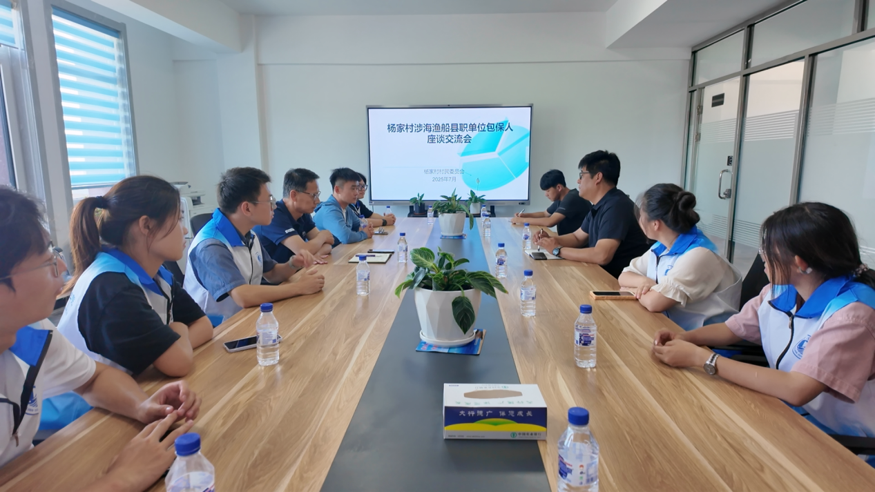 在杨家村委会,张聪书记为公司师生就海上渔民安全生产普法、“青少年法治教育书屋”“法治故事会”等特色活动进行了详细介绍。