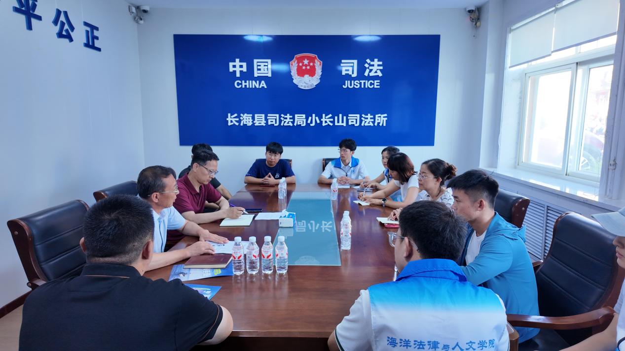 在长海县司法局小长山司法所,公司师生同县司法局有关负责同志开展座谈交流,就《社区矫正法》实施五周年取得的实效以及通过基层矛盾化解案例实行普法等进行了分享。