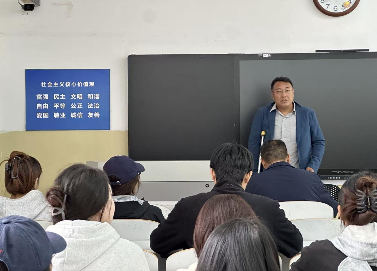 班会伊始,冯处长亲切地向同学们介绍了自己的工作经历以及参与领导干部联系班级活动的初衷。他指出,保卫处的工作虽看似平凡,却肩负着守护校园安全、维护师生权益的重任,这与同学们未来在人力资源管理领域工作中所要秉持的责任意识、规则意识是一致的。同时,他还指出了大学阶段学业规划的重要性。他表示,大学不仅是知识学习的殿堂,更是个人能力培养、职业认知构建的关键时期,清晰的学业规划能帮助同学们避免 “盲目学习”“随波逐流”,使同学们努力的方向更明确。