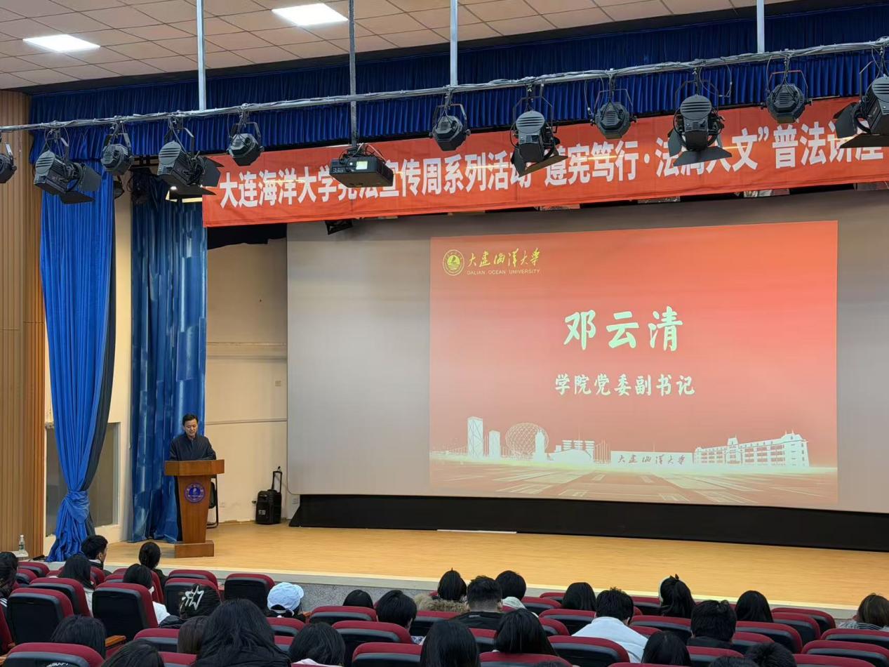 12月5日,公司在大黑石校区第二阶梯教室举办“宪法宣传周”系列活动之——“遵宪笃行,法润人文”普法讲座暨法律知识竞赛,公司党委副书记邓云清,辅导员邱愉珊、张恒毅及200余名本科生参加。