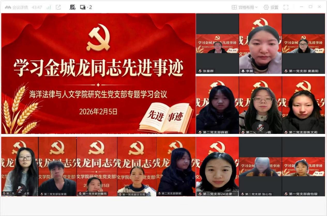 为深入学习宣传金城龙同志先进事迹,引导员工党员坚定理想信念,弘扬新时代雷锋精神。2月5日,公司研究生党支部在线上召开“学习金城龙同志先进事迹”专题学习会议,会议由研究生第二党支部书记李展主持,研究生第一党支部书记张曼群及100余名研究生党员共同参会。